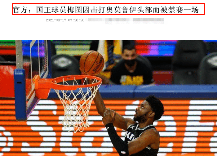 昨日,国王球员梅图在进攻中试图扣篮,独行侠球员奥莫鲁伊防守中动作过大,梅图用胳膊肘击奥莫鲁伊的头部。当时,奥莫鲁伊吃到二级恶意,梅图技术犯规,都被驱逐出场。