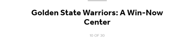 西部:独行侠(缺少值得信赖的二当家)、掘金(护筐能力不足)、火箭(老将太多)、快船(小卡的恢复时间)、灰熊(单打得分能力欠佳)、森林狼(缺替补控卫)、鹈鹕(前场拉开空间的能力差)、雷霆(经验不足)、太阳(大前锋攻守不均衡)、开拓者(防守差)、国王(侧翼深度不足)、马刺(缺挡拆得分手)、爵士(背打缺少威胁)