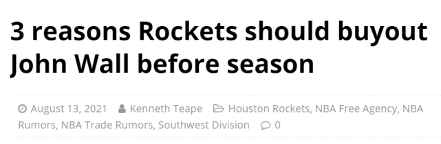 对于火箭来说,这是不划算的买卖。他们要囤积选秀签和年轻球员,把目标定得更远一些。所以,通过交易来甩掉沃尔的合同,不符合火箭的现实利益。