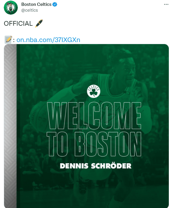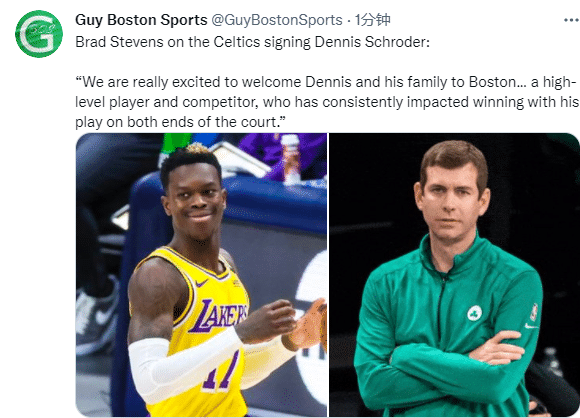 凯尔特人新总裁史蒂文斯发表声明:我们真的很高兴,欢迎施罗德和他的家人来到波士顿;他是一名高水平的球员和竞争对手,他在球场两端的表现都对比赛的胜利有很大的影响。