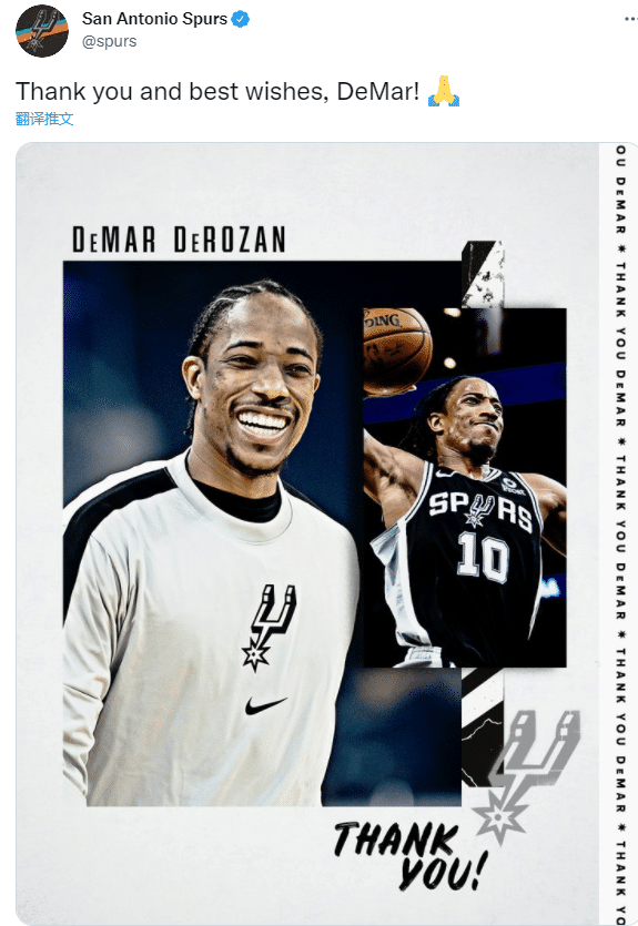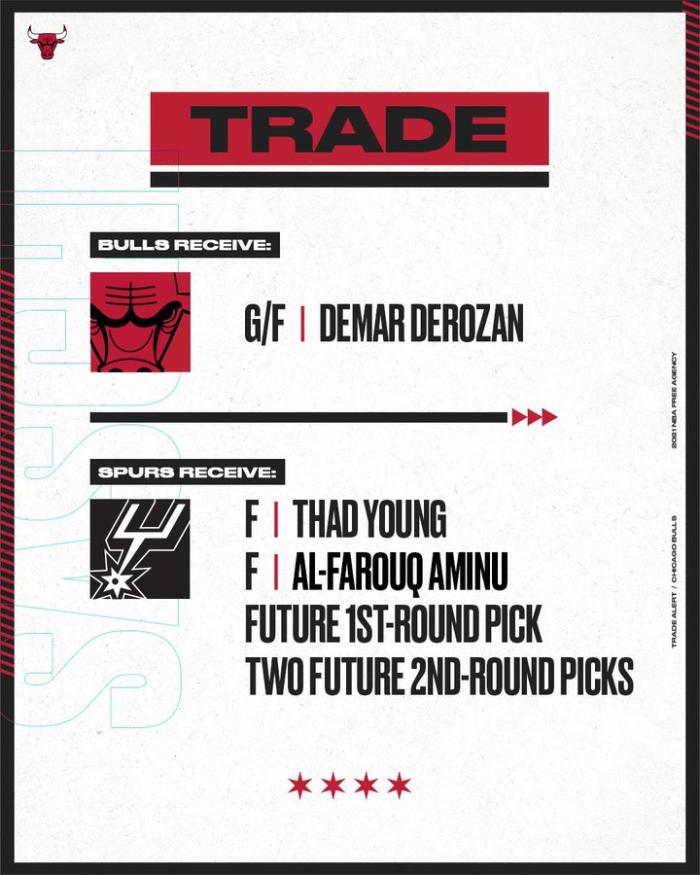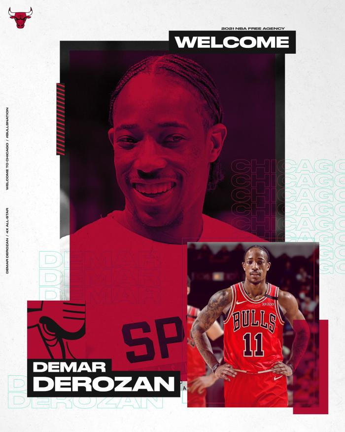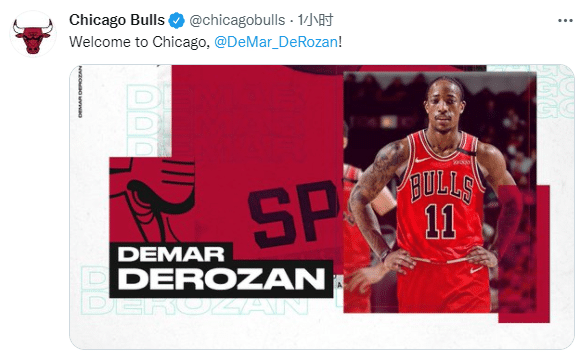 大交易完成之后,公牛晒出德罗赞身穿11号球衣照,发推写道:欢迎德罗赞来到芝加哥;马刺队则是正式告别德罗赞,晒照并且发推:谢谢你,祝你好运,德罗赞。