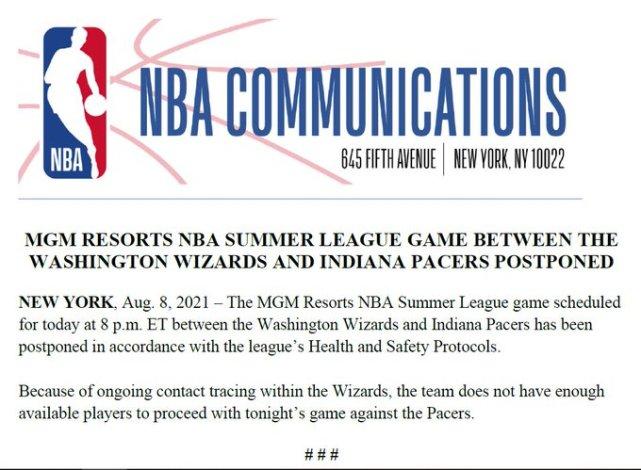 奇才又中招了!NBA官宣推迟一场夏季联赛:球队凑不够上场人数