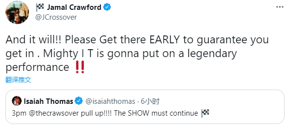 其实比赛之前,小托马斯发推:TheCrawsOver秀继续走起;贾马尔-克劳福德回复:肯定会的,请早点到那里,以保证你能进去,IT将要上演一场传奇式的表演。