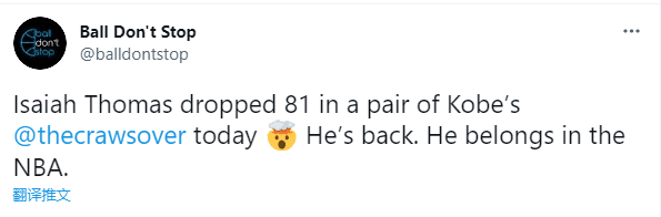 毫无疑问,小刺客打出了一场传奇式表演。美媒Ball Dont Stop发推:小托马斯回来了,他仍旧属于NBA。