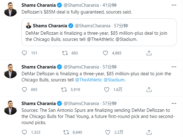 5换1大交易达成!德罗赞被交易到公牛,新签全额保障3年8500万