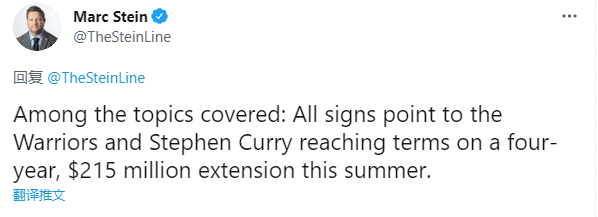 休赛期来了,Marc Stein报道,所有迹象都表明,库里很快就会和勇士达成4年2.15亿美元的续约合同。