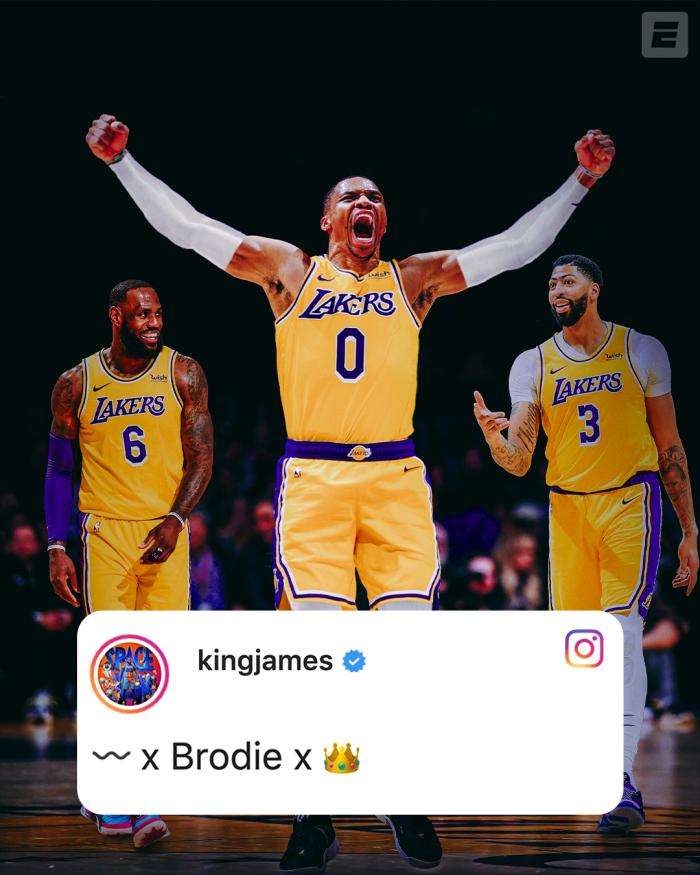 休赛期,湖人已经完成一笔大交易,送走库兹马、哈雷尔、波普和首轮签,从奇才引援得到威少,从而打造新的三巨头——詹姆斯、浓眉和威少联手冲击总冠军;他们三人密谋商谈合作,并且都愿意做出牺牲,比如詹姆斯愿意打4号位,浓眉愿意主打5号位,威少愿意打无球等等。