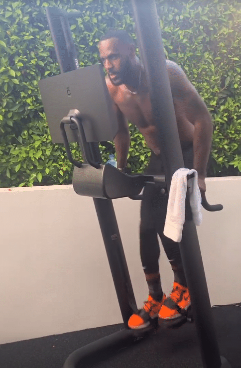 詹姆斯穿着一条黑色的紧身裤,光着膀子在家中挥汗苦练,用登山机加练体能;从训练画面可以看出,詹姆斯的脚踝伤势已经彻底痊愈。