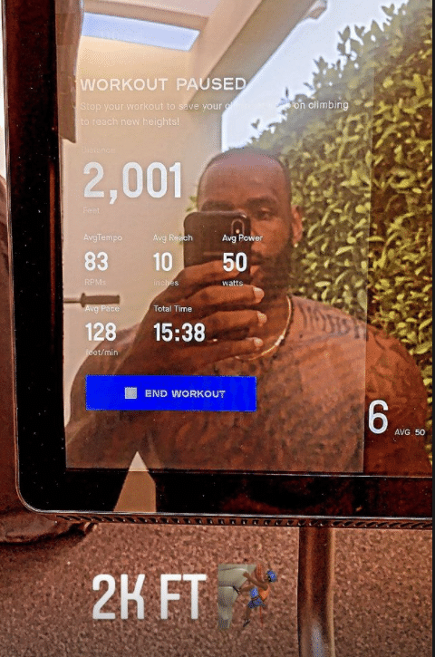 詹姆斯还晒出自己的训练成果,用时15分38秒,登了2001步,平均每分钟128步;年满36岁仍旧是联盟最自律的超级巨星;上赛季,詹姆斯遭遇脚踝伤势,常规赛打了45场比赛,季后赛首发出战6场,场均上场37.3分钟能够拿到23.3分7.2篮板8助攻和1.5抢断。