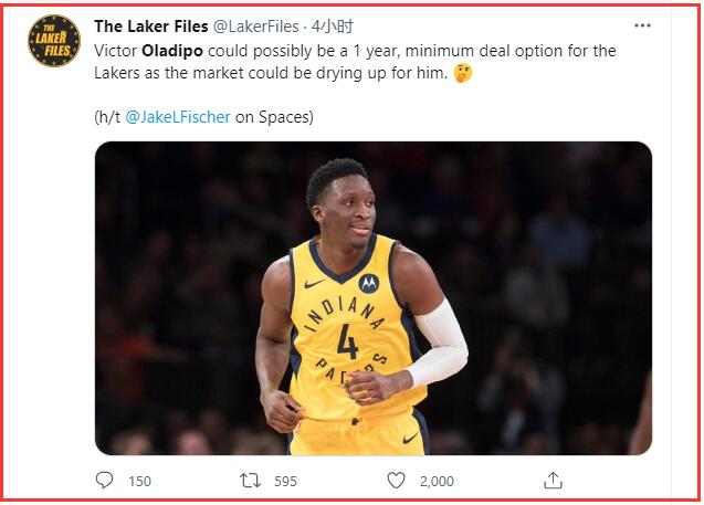 而据《Bleacher Report》记者Jake Fischer在一档节目中透露,奥拉迪波可能会与湖人队签下一份底薪合同,因为自由市场对他来说,已经枯竭了!