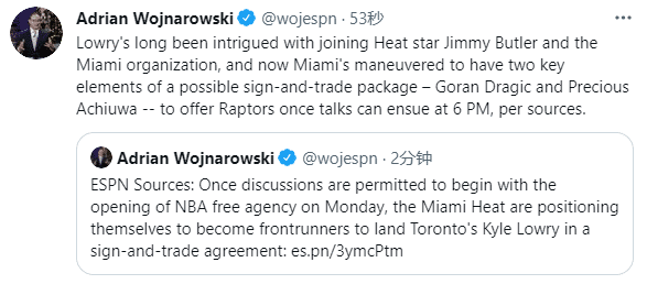 自2012年交加盟猛龙以来,洛瑞已经六次成为全明星球员,并且帮助猛龙在2019年赢得NBA总冠军;现在热火积极引援洛瑞,他有望联手巴特勒继续冲击总冠军;19-20赛季,巴特勒曾带领热火杀进总决赛,但上赛季被雄鹿4-0横扫淘汰。