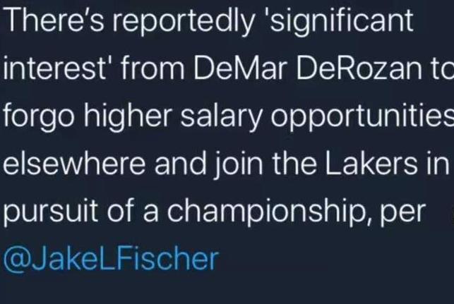 除了安东尼之外,最引人注目的就是德罗赞,20-21赛季,德罗赞依旧能够拿到20+,这个三旬老汉的年薪依旧可以在2000万美元左右,可是显然,湖人队并没有这个钱给德罗赞,他们现在能给德罗赞的只有一份580万的中产合同,可是即便如此,两者还是紧密的联系在一起,讲真的 ,如果德罗赞最终选择这样的方式加入,那就真的是大新闻,下赛季的湖人队也将是总冠军的最热门球队,没有之一。