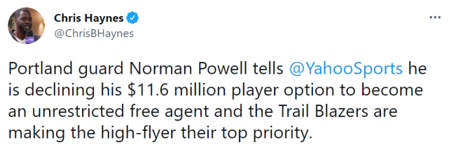 拒绝1160万选项!鲍威尔三大下家曝光,美媒:开拓者或有大交易