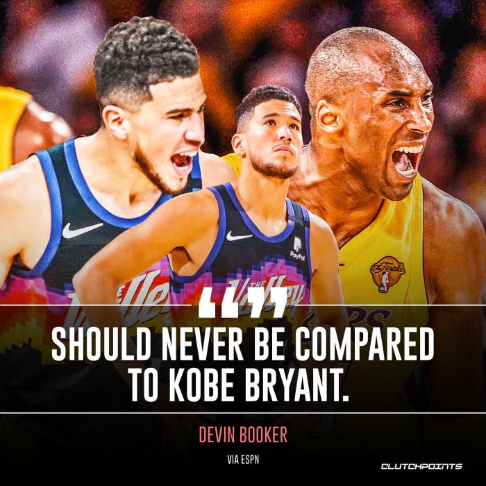 谈到外界拿自己和科比作比较,布克表示:我知道有些人在讨论这个,我自己从来不会做这样的比较,我一直视他为我的导师,我一直在努力追赶他的精神和成就。就我个人而言,我认为我永远都不该和他相提并论。