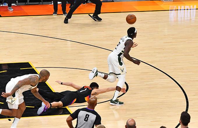 来源:24直播网07-19 18:1724直播网讯 北京时间7月19日,在昨天结束的NBA总决赛天王山之战中,密尔沃基雄鹿客场123-119击败菲尼克斯太阳,将总比反超为3-2。
