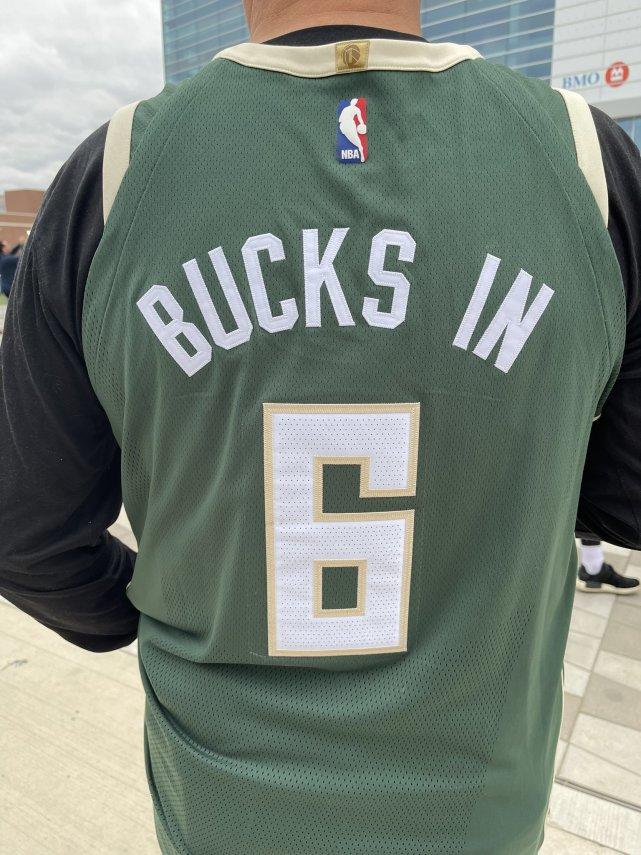 数据网站FiveThirtyEight预测,雄鹿在第6场夺冠的概率是60%。不少球迷高喊雄鹿6场夺冠的口号,还有球迷穿上了雄鹿6战夺冠的球衣(上图)。