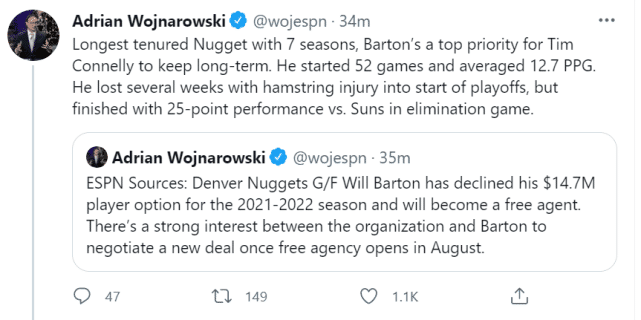 拒绝1470万选项!掘金悍将成为自由球员,美媒列五大下家湖人在内