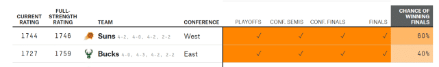 对于雄鹿而言,在输掉了前两战之后,他们一度被无限看衰,夺冠概率仅有13%,此番连胜两场之后,他们的夺冠概率翻了三倍,飙升至40%。