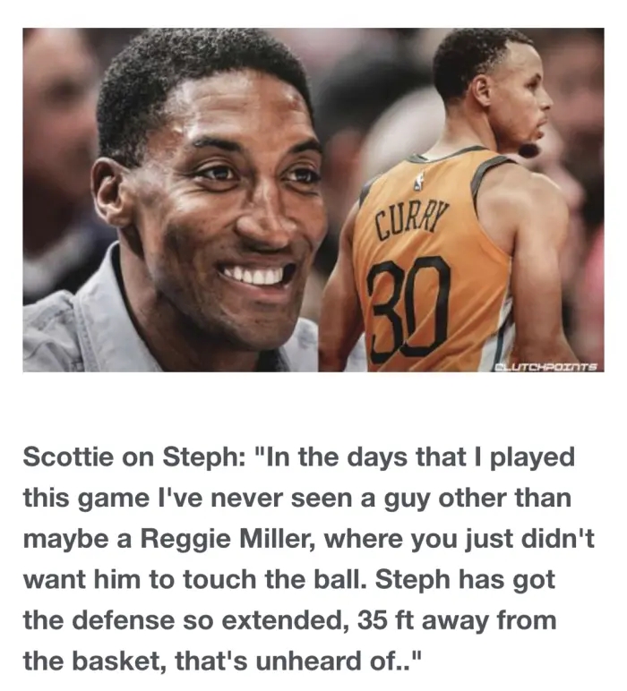 划时代巨星!皮蓬:若库里去90年代打球,会让所有人惊掉下巴包括乔丹!
