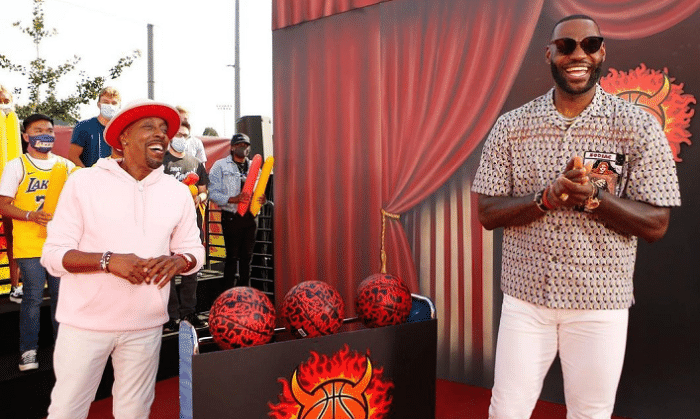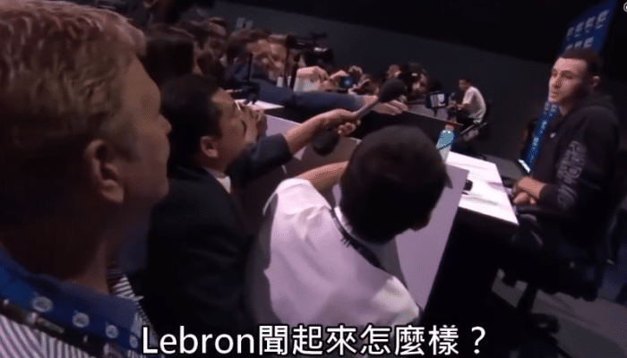 总决赛期间举着詹姆斯和自己的标牌在前排观看,高喊“勒布朗”遭到无视;