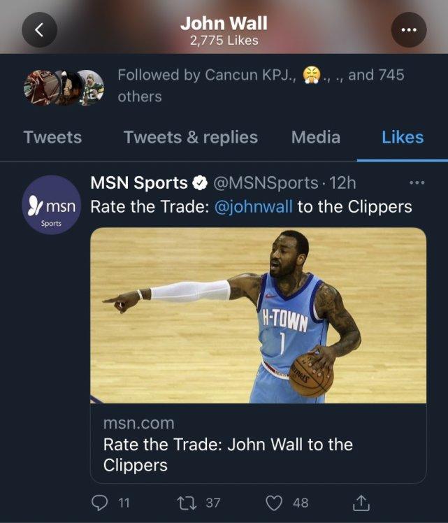 来源:24直播网07-13 11:0424直播网讯 北京时间7月13日,外媒建议快船和火箭进行一笔4换1的交易,快船送出马库斯-莫里斯、贝弗利、朗多和肯纳德,得到火箭的后卫约翰-沃尔。有趣的是沃尔本人在社媒上点赞了这笔交易方案,引起热议。难道沃尔想去快船联手小卡和乔治?