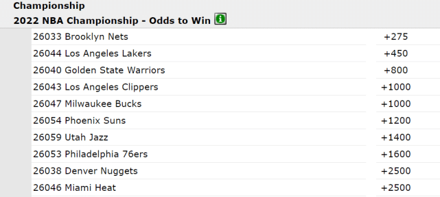 2022年总冠军赔率出炉!篮网力压湖人排名第一,勇士第三火箭垫底