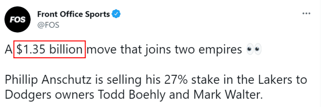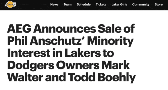 13.5亿美元!湖人官宣27%股份正式转手,两大富豪成为新老板