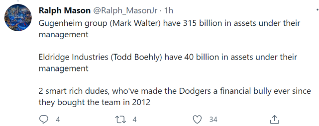 马克-沃尔特和托德-伯利也是洛杉矶道奇(美国职业棒球队)的老板。湖人数据专家Mason在社媒上指出,马克-沃尔特所在的古根海姆集团管理着3150亿美元的资产,托德-伯利所在的埃尔德里奇工业管理着400亿美元的资产。
