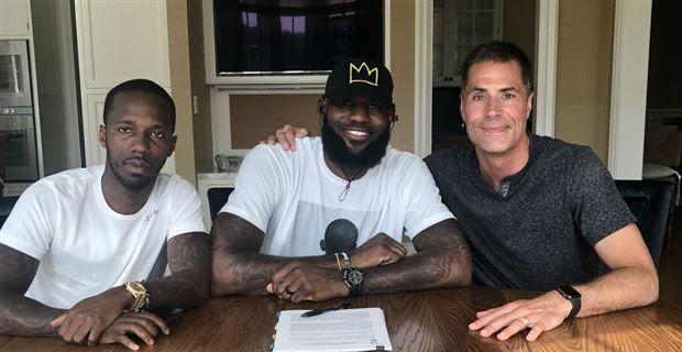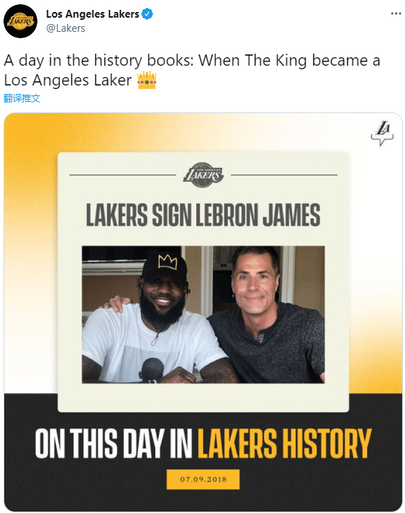3年前的今天,詹姆斯正式和湖人签下4年1.54亿美元的大合同,当时他穿着白色T恤,戴着一顶绣着“王冠”的黑色棒球帽,签合同之后与佩林卡合影,里奇-保罗也在现场。