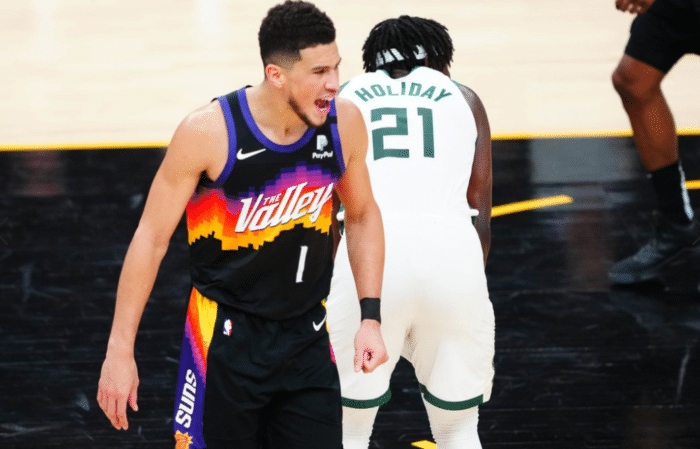 当然了,采访的关键还是保罗和布克两位核心!保罗本场表现一般23分8助但有6次失误,雄鹿的针对性防守对他影响不小,若不是其他人站出来了,这场球如果输了他可能要背锅!这场雄鹿用霍勒迪防他,并且注意协防艾顿,让保罗的挡拆效果下降,但也相应地给了太阳很多三分机会,本场40中20。