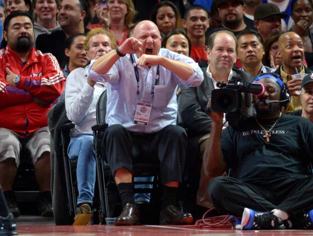 场边观战的鲍尔默,也时常成为摄影师的目标,他看球非常有激情,经常手舞足蹈。鲍尔默斥巨资打造了小卡和乔治的球星组合,但至今没有拿到总冠军。今年季后赛,小卡受膝伤困扰,快船也在西部决赛中2-4不敌太阳。