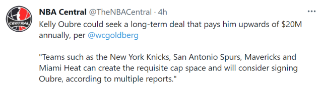 来源:24直播网07-08 10:5724直播网讯北京时间7月8日,据勇士记者Wes Goldberg报道,凯利-乌布雷正在寻求签下一份年薪2000万美元的多年合同,尼克斯、马刺、独行侠和热火会考虑签下这位小前锋。