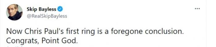 本场比赛之后,拿下G1的太阳按照历史概率来说有71.6%的可能夺冠,名嘴Skip也是发推表示“现在克里斯-保罗的第一枚总冠军戒指已成定局,恭喜控卫之神。”好友詹姆斯发推“拿下一场,还有三场”