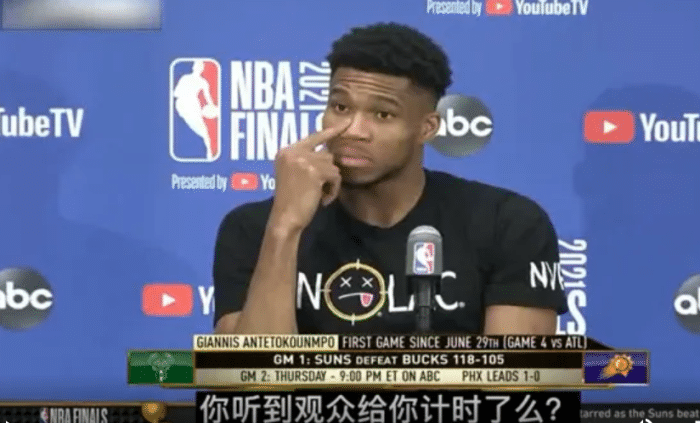 谈到今天比赛表示膝盖现在没有痛感,能出战总决赛很兴奋,现在所有注意力都放在场上,其他的交给医疗团队!他认为本场比赛球队的侵略性不够,进攻端不够坚决,防守端的身体对抗没达到要求。而谈到太阳主场2万球迷为他罚球计数他表示自己注意到了,但自己已经习惯了!