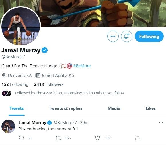 有趣的是在太阳赢下G1,在雄鹿面前展现了极强的夺冠欲望后,引发了一系列的效应!掘金球星穆雷更新个人推特写道:“拥抱当下吧!菲尼克斯。”随后有网友在这条动态下评论说到:“当你今年夏天加入湖人你很快也会拥抱这个时刻的。”穆雷本人点赞了这条推特!