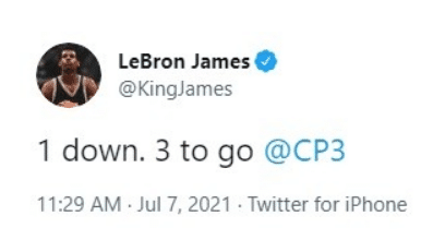 来源:24直播网07-07 15:2024直播网讯 北京时间7月7日,NBA总决赛首战太阳118-105轻松击败雄鹿,拿下开门红。此役,保罗成为太阳的头号功臣,他在第三节独得16分,率队拉开比分,成为球队取胜的关键。赛后,詹姆斯也发推盛赞兄弟:还差三场!