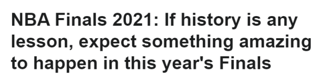 来源:24直播网07-06 11:3724直播网讯 2021年总决赛即将打响。太阳53年队史从未夺冠,雄鹿只拿过一次总冠军,而且要追溯到1971年。ESPN回顾了历史上的经典总决赛,总结了一点:每5年的总决赛似乎都有特别的事会发生,都会诞生新的壮举。