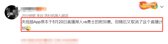 然而,仅仅时隔几个小时,情况出现大反转,据媒体报道,央视又取消了转播勇士和湖人附加赛的计划,而且,这条消息还成为热搜词。