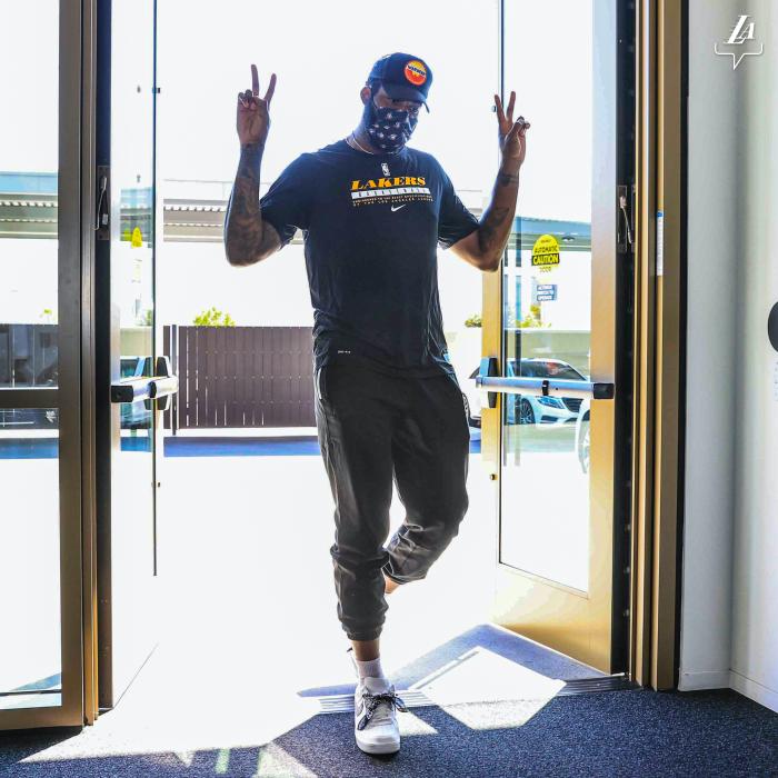 来到斯台普斯球馆时,庄神冲着镜头双手比V,随后他和浓眉撞肩并拥抱,此时浓眉满脸笑容笑开花;浓眉也穿着训练服,继续为复出找状态。