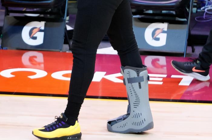 其实右脚踝高位扭伤,也不算什么特别大的伤病。要不是年轻时候的詹姆斯,直接起来跺跺脚,绑紧鞋带继续战斗了。现如今老汉年龄变大,湖人又志在总冠军。所以才坚决不让詹姆斯冒这个险的。在湖人客场挑战太阳的比赛中,詹姆斯出现在场边观战,他右脚穿着保护靴。对于詹姆斯在场边行走的画面,一个职业运动训练医师说到:看到詹姆斯在穿着CAM保护靴时,并没有使用任何辅助性工具,帮助他调整步态和分担承重。这通常意味着詹姆斯的伤情更轻度化了。通过医师的表述,我们可以得知,詹姆斯的右脚踝扭伤这属于小伤大养。相信詹姆斯会很快回归赛场的。