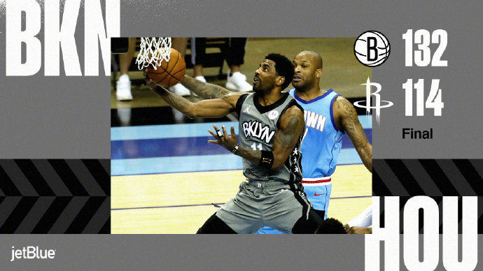 末节,两支对球对攻,火箭期间依靠着沃尔和麦克勒摩两记三分打出10-0的攻势将分差缩小至8分看到希望,但哈登站出来连中两记单打三分砍下8分,篮网回敬一波12-3的攻势拉开比分扑灭了火箭的希望。最终,篮网客场132-114轻取火箭拿下比赛。
