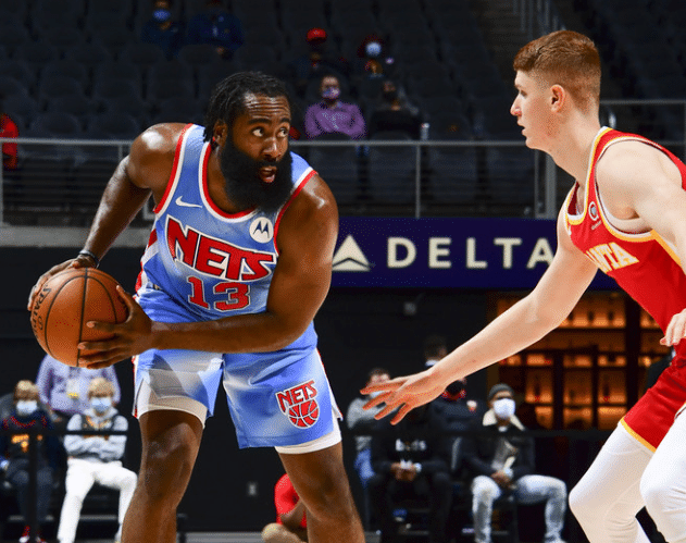 哈登第三节又开始减少进攻,主要扮演控卫组织进攻,杜兰特多次吃饼轻松得分(单节13分),不过篮网一直和老鹰打得难分难解;末节哈登贡献9分,关键时刻上篮以及造特雷杨犯规,不过哈登错失绝杀,篮网和老鹰打进加时赛。