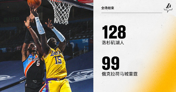 湖人128-99轻取雷霆 詹姆斯26+7+6 浓眉18+7
