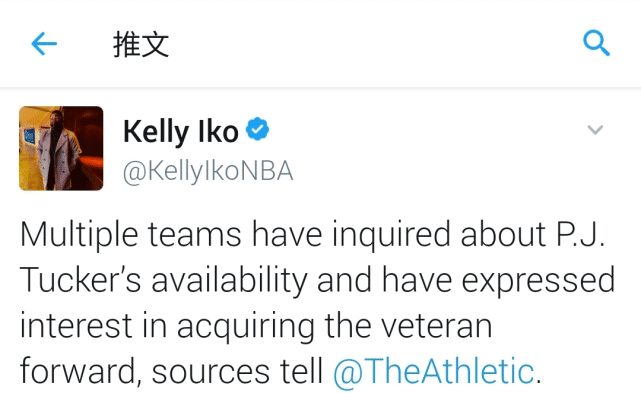 这笔交易之后火箭随队记者Kelly Iko爆料,多支球队已经开始询价塔克。这位老将的合同将于本赛季结束后到期,拼劲十足的他可谓是出色的争冠拼图,加上到期合同又不会长久影响球队,因此他极有可能被火箭送走,换回一些选秀权。