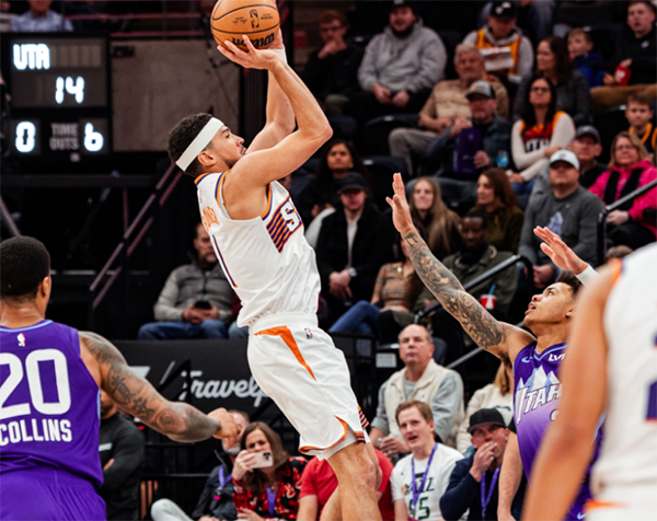 24直播网讯北京时间12月14日,NBA常规赛太阳客场134-126击败爵士从而终结自己的三连败,杜兰特复出之战,全场17投8中、三分5中2、罚球12中12拿到30分8助攻3篮板,布克26投13中拿到34分8助攻2篮板,杜布合砍64分18助攻率队客场取胜。