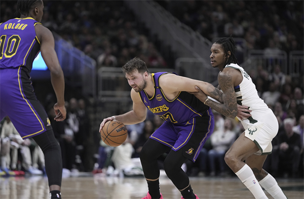 詹姆斯、八村垒和海耶斯都因伤提前返回洛杉矶,东契奇率队开启8天6赛的魔鬼赛程,今日客场大战字母哥和利拉德领军的雄鹿,东契奇拼尽全力仍吞败局。