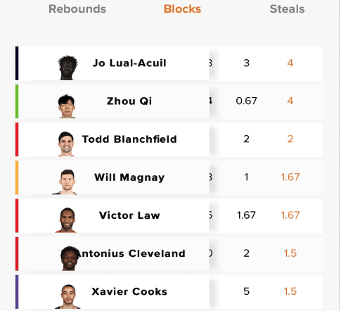 以下是周琦3轮常规赛之后的个人数据在NBL联盟中的排名: