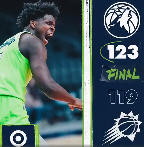 24直播网3月19日讯 NBA常规赛,太阳今日迎战森林狼,前者上场比赛大胜灰熊排在西部第二位,而后者上场比赛则是输给了湖人依旧在西部垫底。比赛上来森林狼就表现出了极强的求胜欲望,唐斯和爱德华兹都有上佳表现,而太阳这边单节失误上双打得十分混乱,进入次节太阳虽然在进攻端表现不错,但实在无法限制爱德华兹的发挥,后者单节拿到15分帮助森林狼紧咬比分,半场结束时太阳领先5分。易边再战,太阳一直占据着场上的主动,分差也是被拉开到了两位数,但森林狼并没有放弃并成功在末节追上了比分,比赛悬念保持到了最后,关键时刻爱德华兹杀到禁区造成犯规但两罚中一,不过森林狼使出犯规战术没有给对手三分绝平的机会,最终森林狼123-119逆转太阳。