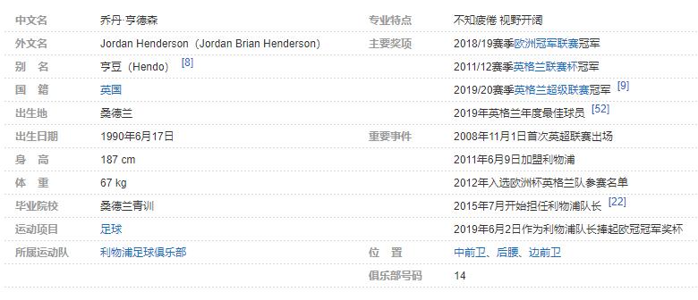 乔丹·亨德森(Jordan Henderson),全名乔丹·布赖恩·亨德森(Jordan Brian Henderson),1990年6月17日出生于英格兰桑德兰,英格兰足球运动员,场上司职中前卫,效力于英超的利物浦足球俱乐部,亦担任球队队长。个人简介: