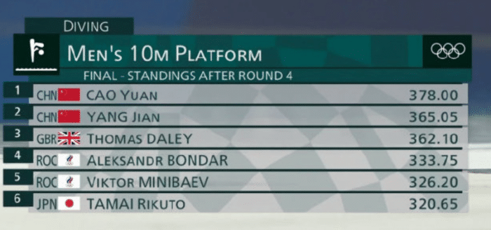值得一提的是曹缘此前在和陈艾森搭档男子双人10米跳台,就是因为失误而以1.23分遗憾的输给了戴利领衔的英国组合,这也是中国跳水队在本届奥运会丢掉的第一枚金牌。所以这次的比赛曹缘也是憋着一股劲想要在单项赛证明自己,然后复仇戴利,所以不论是预赛还是半决赛,曹缘表现都相当出色,不像戴利等人有明显波动的发挥。